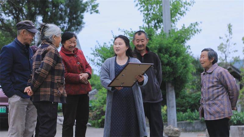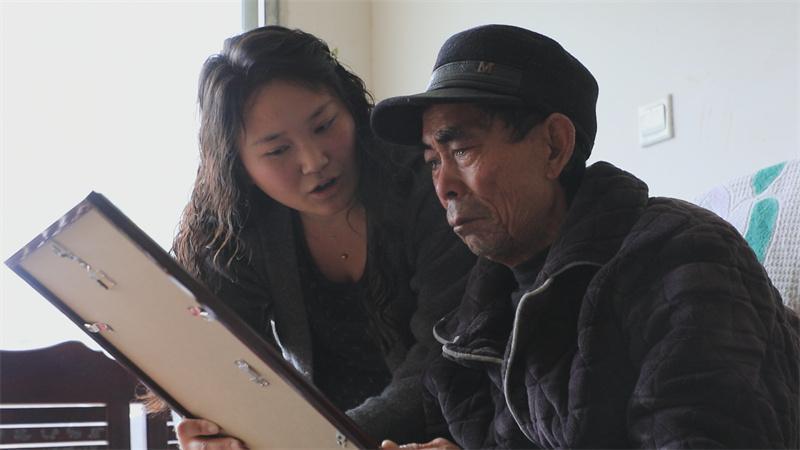 给烈士家属看烈士的画像。昭化区融媒体中心供图